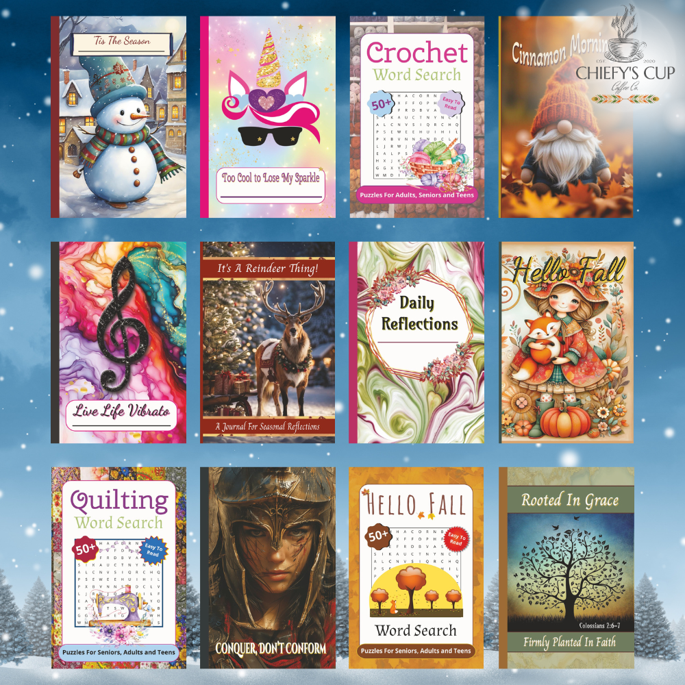 Discover our heartfelt collection of journals and themed word search puzzles — each designed to bring creativity, calm, and connection to your everyday moments.